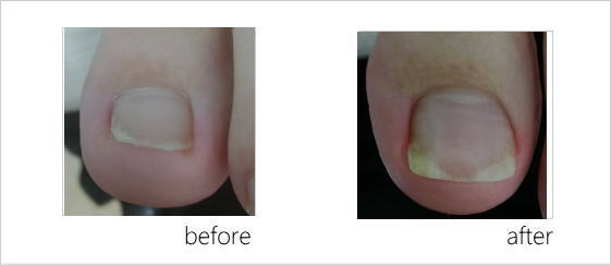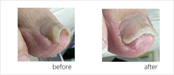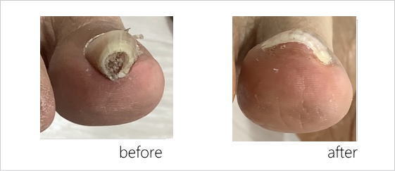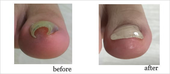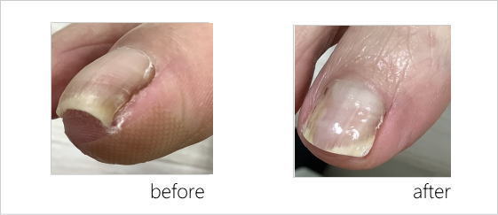 before写真では爪が分厚くなり皮膚と爪の隙間もない状態になっています。